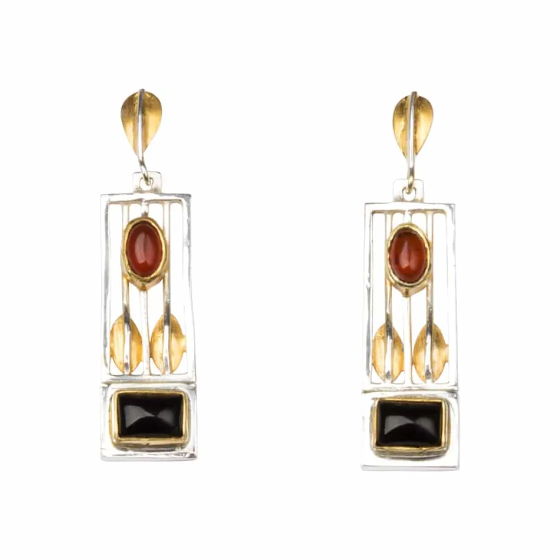 3,6 x 1 cm, 925er Sterlingsilber, 22 Karat-Goldplattierung, Bernstein, schwarzer Onyx.