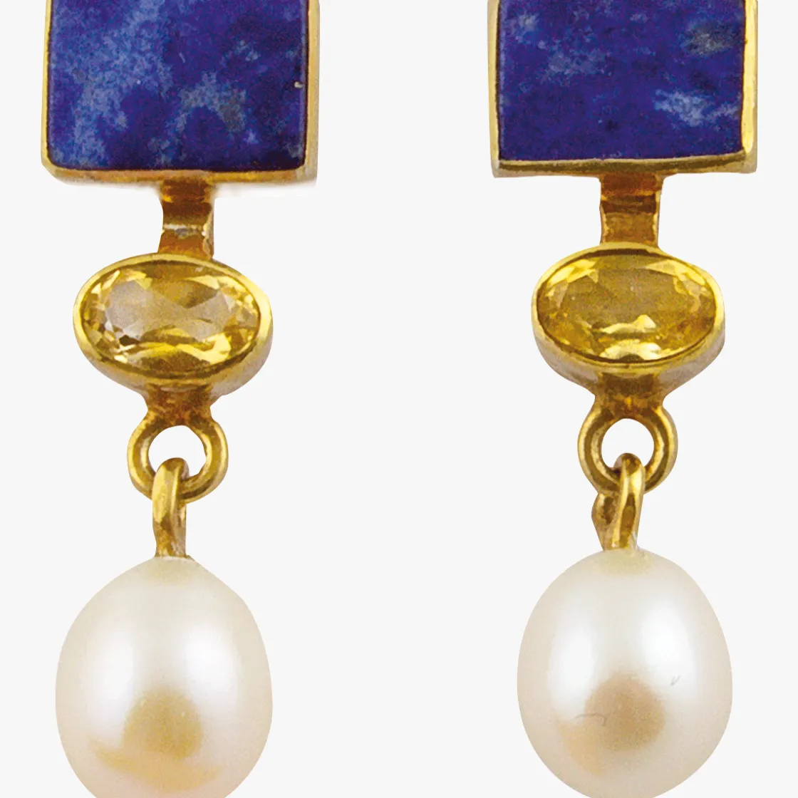 2 x 0,7 cm, 925er Sterlingsilber, 22 Karat-Goldüberzug, Lapislazuli, Citrin, Süßwasserzuchtperlen.