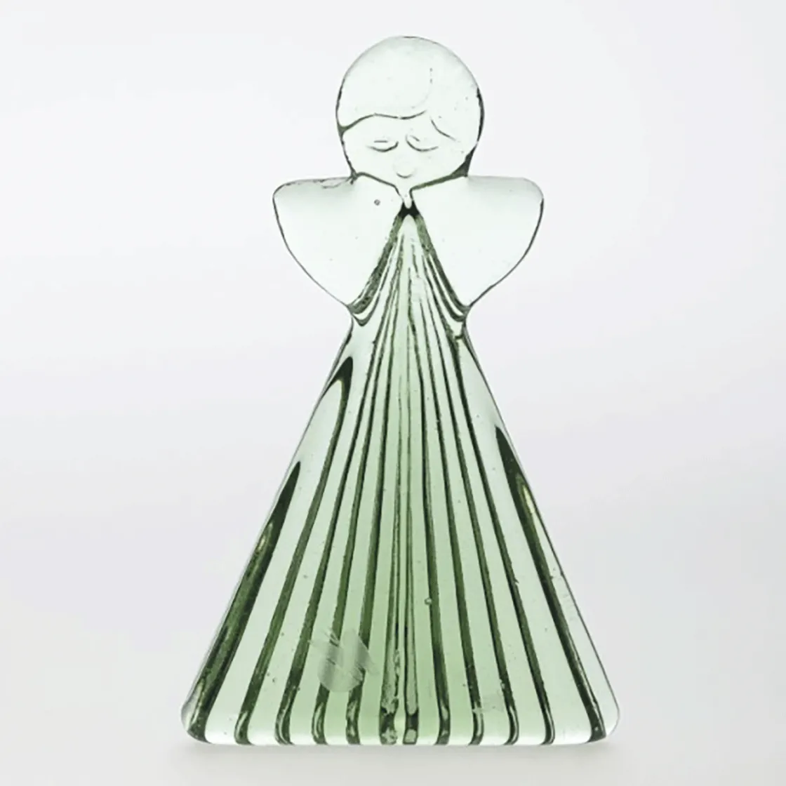Ein großer Engel aus echtem Thüringer Waldglas wird Sie besonders in der Weihnachtszeit erfreuen. Sie können den 15 Zentimeter großen Engel aus grünem Glas hinstellen, wo Sie möchten. Oder Sie binden ein durchsichtiges Band um seinen Hals und hängen die Engelsfigur im grünen Faltenrock an einer Wand, vor einem Fenster oder direkt im Christbaum auf. Der Engel aus der Farbglashütte Lauscha ist selbstverständlich von Hand in dem thüringischen Ort gefertigt worden. Bereits vor 400 Jahren haben die damaligen Glasbläser mit Waldglas gearbeitet. Es besteht aus Sand, Kalk und Buchenasche – Rohstoffen, die es in der Region von Lauscha und Sonneberg reichlich gab. Das Grün in diesem speziellen Glas entsteht durch das Eisen, das der Sand und die Holzkohlenreste enthalten. Die heutige Farbglashütte Lauscha hat sich unter anderem auf das echte, originale Thüringer Waldglas spezialisiert und stellt es fast genauso wie früher her. Die Glaskünstler fertigen heute daraus Figuren wie kleine und große Engel her, Trinkgläser, Flaschen, Karaffen, Glasplatten und Schalen sowie Vasen. Viele Waldglas-Produkte finden Sie auch hier bei uns im Shop, schauen Sie sie gerne alle an.