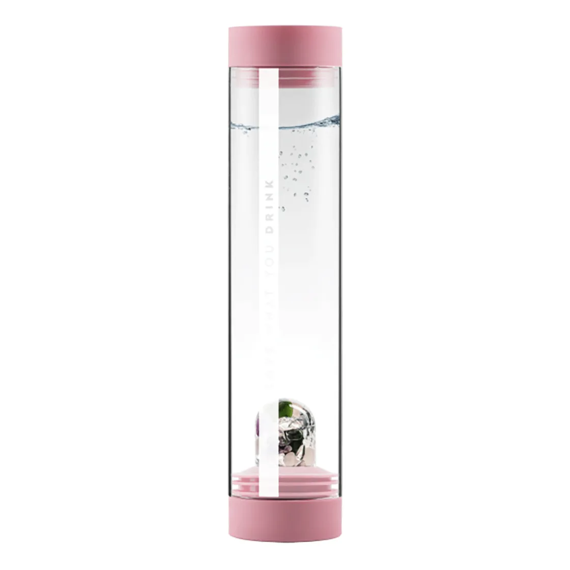 33 cm, Ø 7,5 cm, Volumen ca. 750 ml, Edelsteine: Amethyst, Rosenquarz, Nephrit, Bergkristall.
