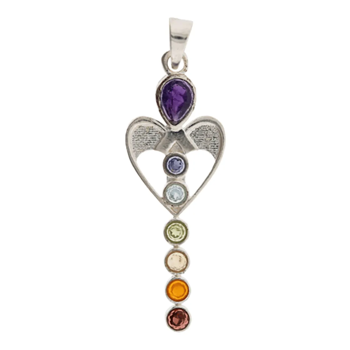 Dieser anmutige Engel mit Chakrasteinchen verbindet den himmlischen Schutz des Engels mit der kraftvollen Energie der Steine. Die lichtvolle Energie des Engels unterstützt die Balance und die Klärung unseres gesamten Chakraenergiesystems. Mit Granat, Karneol, Citrin, Peridot, Blauer Topaz, Iolith, Amethyst, 925 Silber, Größe: ca. L. 3,9 x B. 1,5 cm, Höhe ohne Öse 3,9 cm.