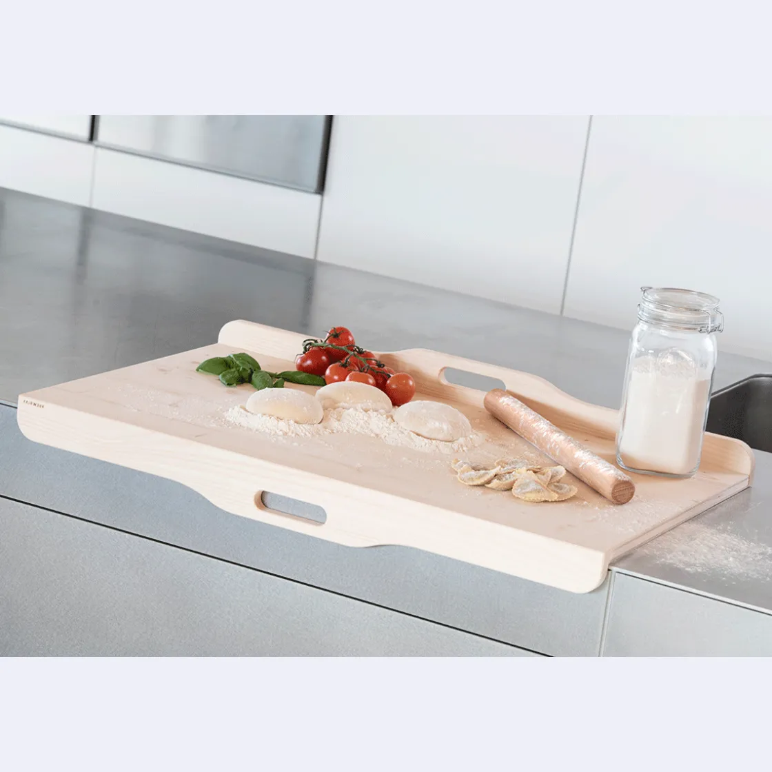 Egal ob beim Ausrollen von Pizza- oder Plätzchenteig: Die Leiste sorgt bei diesem Nudelbrett aus Holz dafür, dass die praktische Unterlage nicht verrutscht. Zusätzlich dazu verhindert die zweite Leiste, dass die Backzutaten über den oberen Rand gleiten. Die naturbelassene Oberfläche macht dieses schöne Nudelbrett besonders lebensmittelfreundlich. Die antibakterielle Wirkung der im Holz vorhandenen Inhaltsstoffe können sich voll entfalten. Der Hersteller »Fairwerk« steht seit über 20 Jahren für gutes Design aus den Inntal Werkstätten der Stiftung Attl, einer Einrichtung für Menschen mit Behinderung im bayrischen Wasserburg am Inn. Für jedes Produkt wird ein ausgeklügelter Herstellungsprozess festgelegt, so dass die Fertigung für Menschen mit jedem Handicap möglich ist. Die Produkte sind hochwertig in Material und Verarbeitung und langlebig im Nutzen.