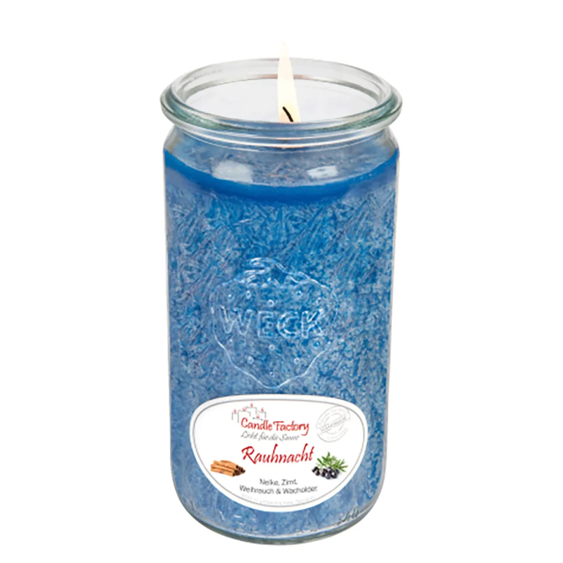 Ø 6,5 cm, 13 cm, 100 % Stearin, wiederverwendbares Weck-Glas, Brenndauer 70 Std.