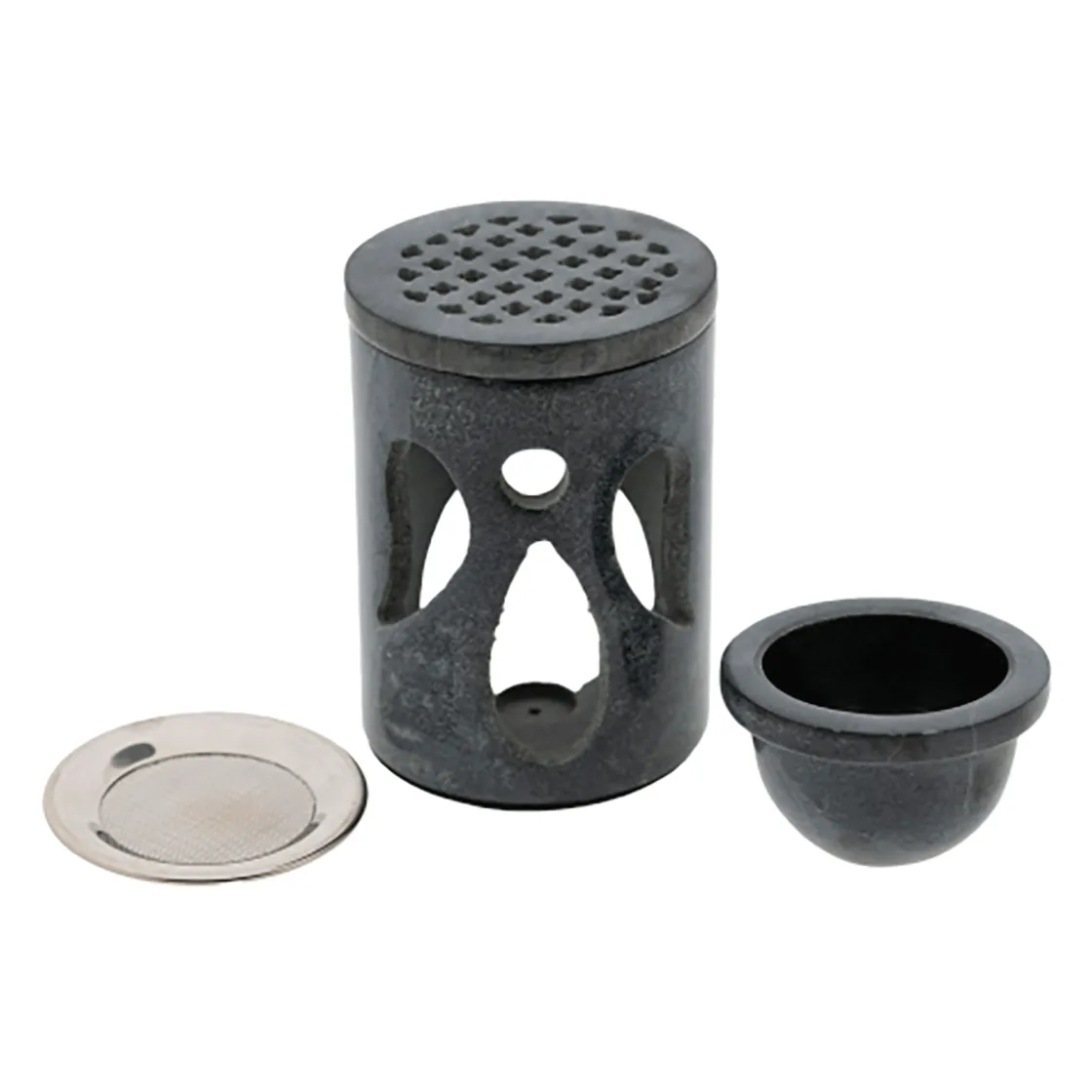 Engel Fülle – unser vielseitiger Engel für jede Gelegenheit: Er dient als Kegelhalter mit Vertiefung im Boden, Siebgefäß zum Räuchern, Aromalampe mit Specksteinschale, und süßes Teelichtlämpchen. Der Ornamentdeckel wirft bezaubernde Lichtmomente. Perfekt für stilvolle Atmosphäre. Mit 4 Funktionen in einem Speckstein, ca. H. 9,5 x Ø 6,5 cm, Edelstahlsieb ca. 6 cm.