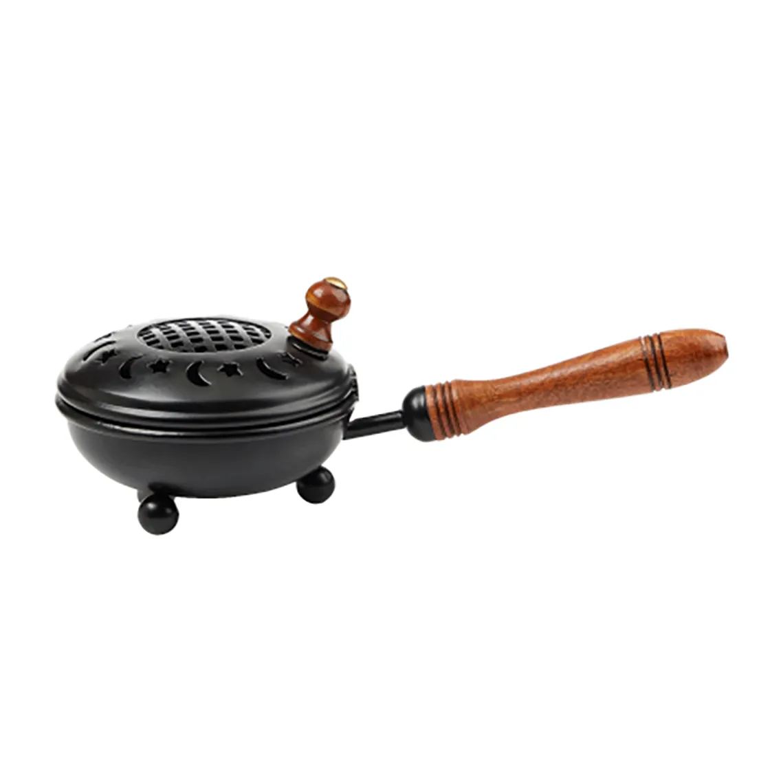 Räuchere mit der Kraft von Mond und Sternen und trage die Energie der Räucherung dorthin, wo sie gerade gebraucht wird! Trageräuchergefäße sind nicht umsonst so beliebt, denn sie sind praktisch und wirkungsvoll. Damit lässt sich jeder Winkel des Hauses mühelos von negativen Energien reinigen. Eisen, schwarz lackiert, Mango-Holzgriff L. ca. 12 cm, Gesamtlänge ca. 26 x H. ca. 9 cm, Ø ca. 12 cm.