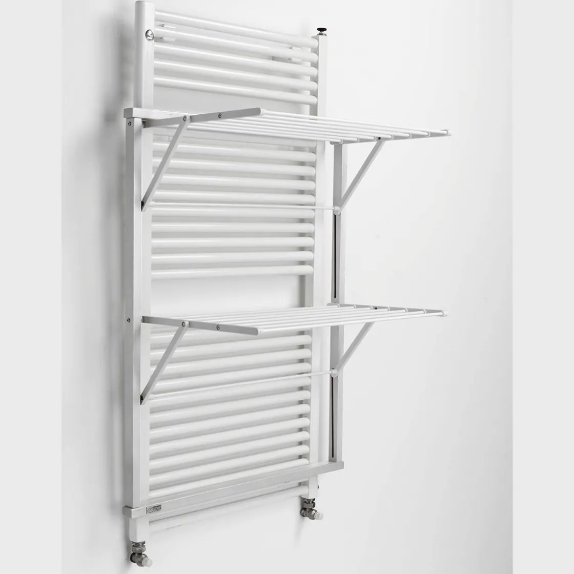 Der Wäscheständer für Heizkörper ist die Lösung für kleine Räume. Das klappbare Design sorgt dafür, dass der Ständer keinen Platz benötigt, wenn er nicht in Gebrauch ist. Der funktionale Trockner wird einsatzbereit geliefert und ist einfach am Heizkörper zu befestigen. Die Haken sind zum Schutz des Heizkörpers hitzebeständig beschichtet.