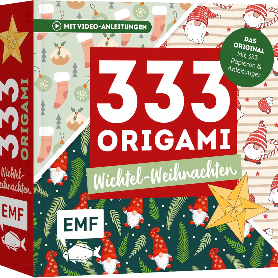 Wunderschöne Origamikunstwerke selber falten – mit Schritt-für-Schritt-Anleitungen und 333 weihnachtlichen Origamipapieren mit Wichtel-Mustern. Enthalten sind ein Origamiblock mit hochwertigem Origamipapier voll wunderschönen Mustern und Farben sowie eine Step-by-Step-Bastelanleitung. Für Origami-Liebhaber und -Neulinge. Hier treffen zauberhafte Wichtel-Weihnachtsmuster auf traditionelle Faltkunst: sie verleihen den Origami einen feierlichen Touch. So entstehen tolle Figuren wie Sterne, Bäumchen und Wichtel in einem entzückenden Design. Die 333 sind auf 80g m Offsetpapier gedruckt und haben somit die für Origami typische Papiergrammatur und -größe.