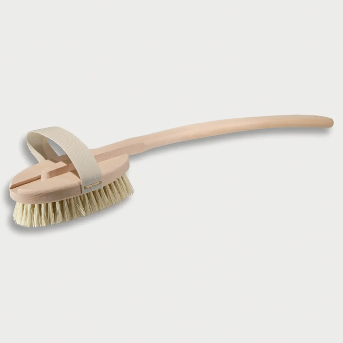 Die Badebürste aus Holz ist besonders gut geeignet für trockene Haut. Sanft wird überflüssige Haut entfernt. Als Massagebürste regt sie die Durchblutung an, perfekt auch zur Behandlung von Cellulite. Senioren können die Rückenbürste mit langem Stiel leicht nutzen, dank gebogenem Stiel ist der gesamte Rücken wohltuend zu bürsten. Der lange Griff ist abnehmbar, die Bürste hat eine Handschlaufe und liegt so gut in der Hand. Wir empfehlen, die Badebürste unter fließendem Wasser auszuspülen und sie dann mit den Borsten nach unten an der Luft zu trocknen. Um ein Aufquellen des Holzes zu minimieren, kann der Griff mit bei Bedarf Pflanzenöl eingerieben werden.