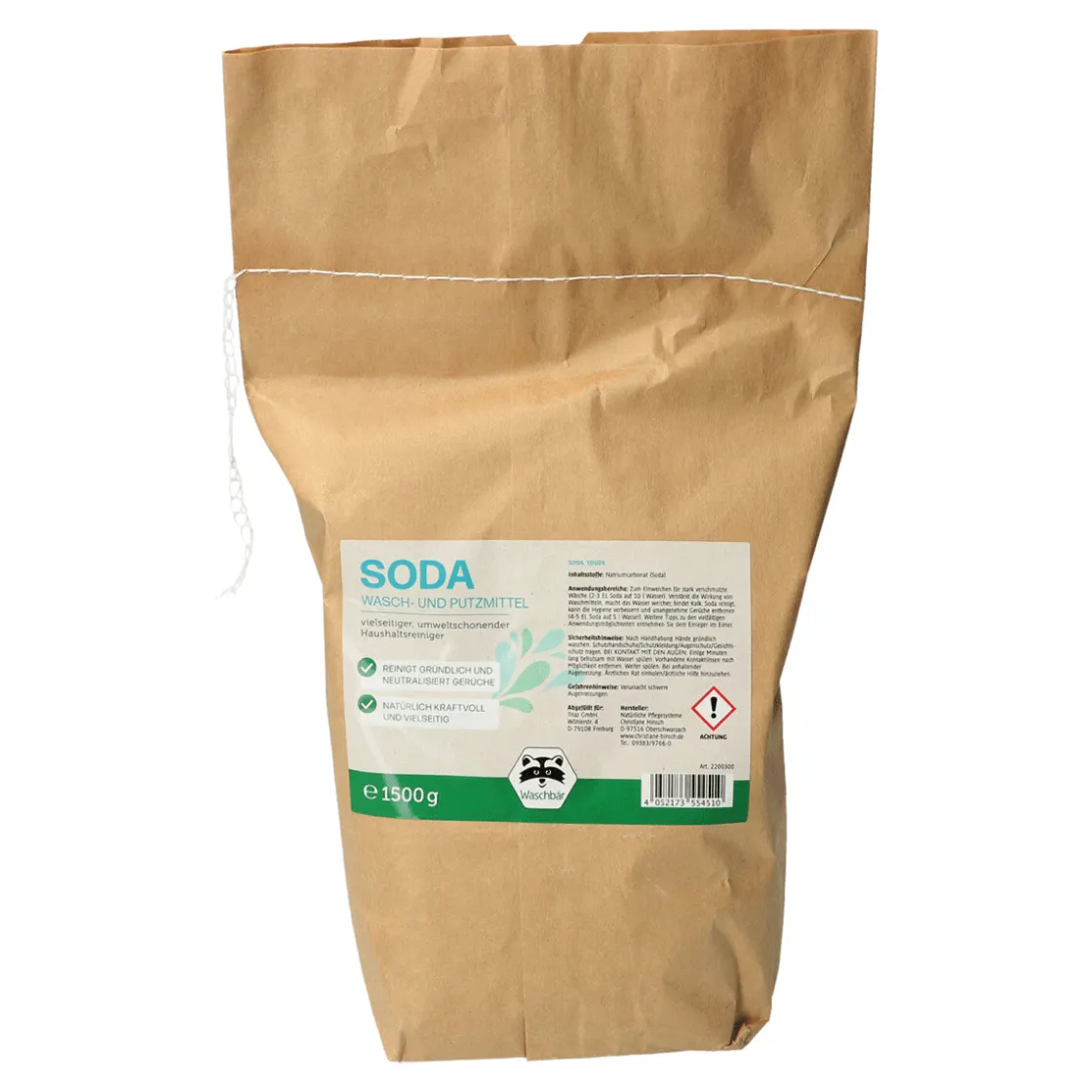 Soda braucht man immer! Das Chemiebuch nennt es »Natriumcarbonat«, der Volksmund sagt auch »Waschsoda«. Es ist ein traditioneller, vielseitiger und umweltschonender Haushaltsreiniger und Waschkraft-Verstärker. Zum ökologisch sinnvollen Wäschewaschen, Einweichen, Entfernen und Vorbehandeln von Flecken. Als Lauge in Wasser gelöst, verstärkt Soda die Wirkung von Waschmitteln und Reinigern, bindet Kalk, entfernt Algen, Schmutz und Flecken. Ideal für Berufskleidung, Tisch- oder Bettwäsche, aber auch für die Gummisohlen von Freizeit- und Turnschuhen. Soda reinigt Gartenmöbel aus Plastik, die Kochfelder aller Herdarten, Fensterrahmen oder Keramik. Sogar Rost lässt sich mit Soda lösen, universeller gehts einfach nicht. Nicht geeignet für Aluminium und alkaliempfindliche Oberflächen wie Marmor, polierter Granit, Kalkstein. Bei empfindlichen Oberflächen bitte vor der Anwendung an verdeckter Stelle prüfen.