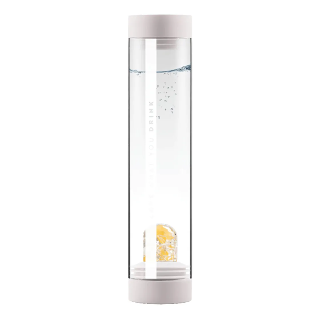 33 cm, Ø 7,5 cm, Volumen ca. 750 ml, Edelsteine: Orangencalcit, Magnesit, Bergkristall.