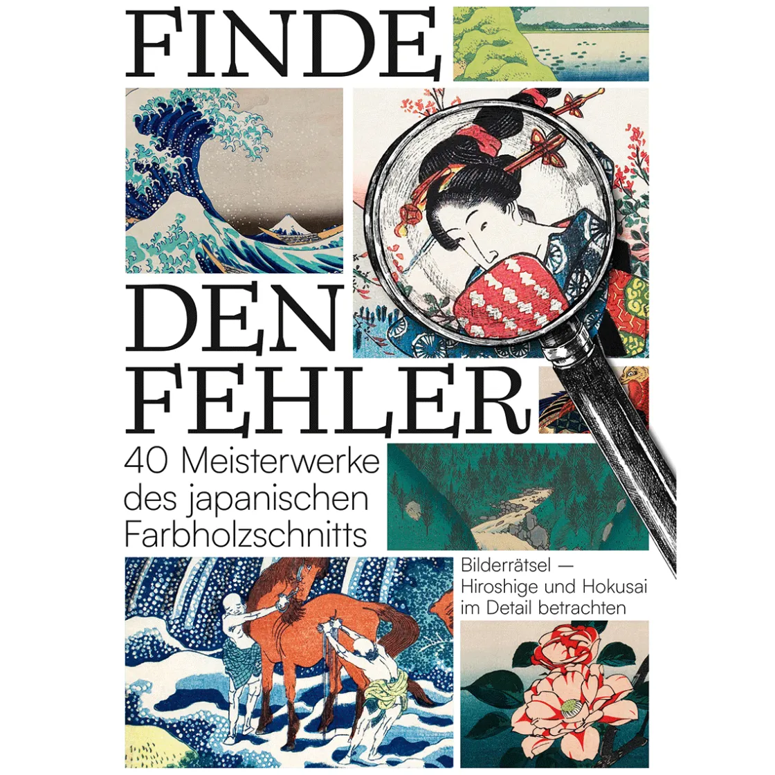 Reisen Sie mit uns 300 Jahre in der Zeit zurück nach Japan und erfreuen sich an den hervorragenden künstlerischen Werken der beiden bekanntesten Holzschnittkünstler ihrer Zeit: Katsushika Hokusai (1760-1849) und Utagawa Hiroshige (1797-1858). In diesem Bilderrätselbuch stellen wir Ihnen 40 Meisterwerke von Hokusai und Hiroshige vor: Oben auf der rechten Seite sehen Sie jeweils das Originalmotiv, darunter die »Fälschung« und dann heißt es: Argusaugen auf und losgerätselt. Finden Sie die Fehler? 400 an der Zahl gilt es zu entdecken! Ob mit Scharfblick, Lesebrille oder Lupe, vergleichen Sie die beiden Bilder und markieren die zehn Fehler. So intensiv haben Sie sich Hokusais und Hiroshiges Kunstwerke noch nie angesehen. Manchmal wird’s richtig schwierig, ein anderes Mal sind Sie vielleicht schneller. Sicher aber ist: Den 10. Fehler zu finden, erfordert stets höchste Konzentration. Die Lösung sowie Informationen zu den Holzschnitten-Gemälden finden Sie stets auf der Rückseite.
