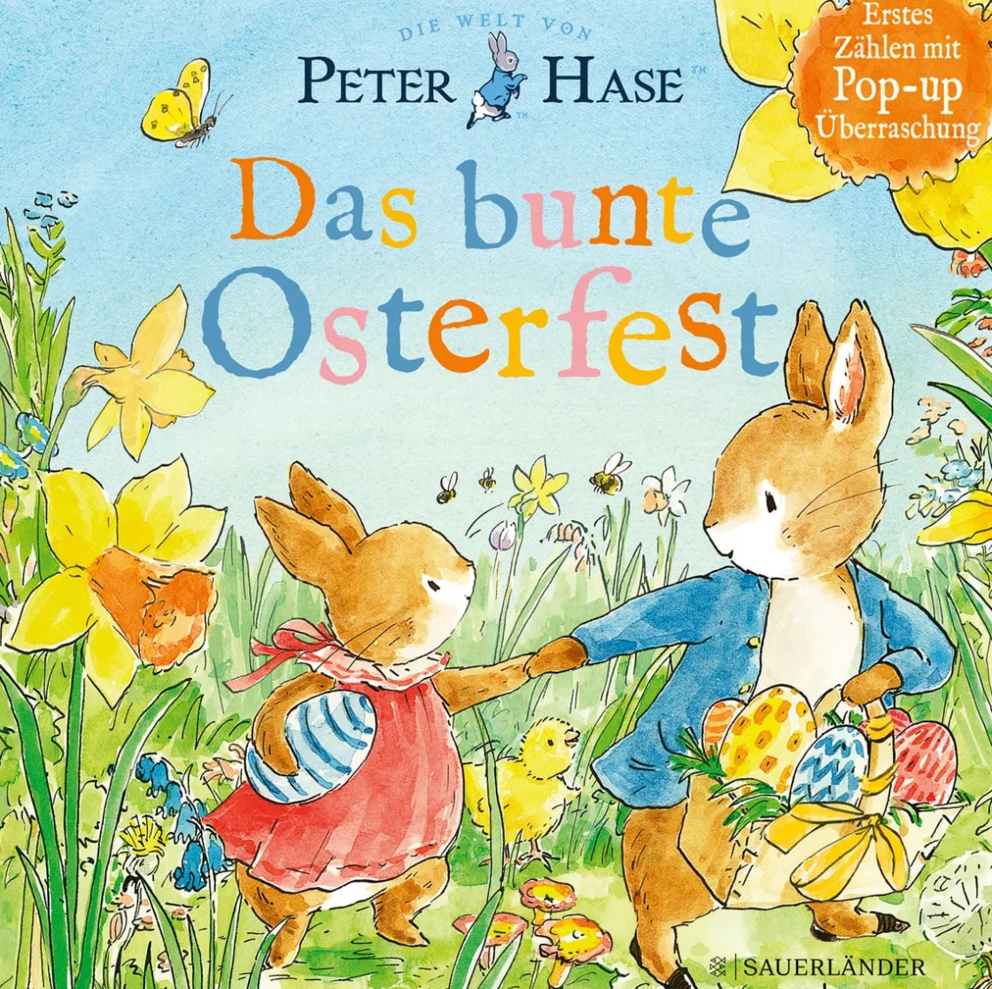 Ein fröhliches Pappbilderbuch zu Ostern mit Peter Hase und seinen Freunden An einem sonnigen Ostermorgen hoppelt die kleine Schwester von Peter Hase vergnügt über die bunten Frühlingswiesen. Da gibt es viel zu entdecken. Bunte Blumen, summende Bienen, flauschige Osterküken und kuschelige kleine Osterlämmchen. Und beim Osterpicknick überrascht Peter Hase seine Schwestern mit kunterbunten Ostereiern. Erstes Zählen und ein Pop-up Effekt am Schluss dieses liebevoll gestalteten Pappbilderbuchs, sind das ideale Ostergeschenk für alle die, die die Peter Hase Geschichten von Beatrix Potter lieben. (Ab 2 Jahre)