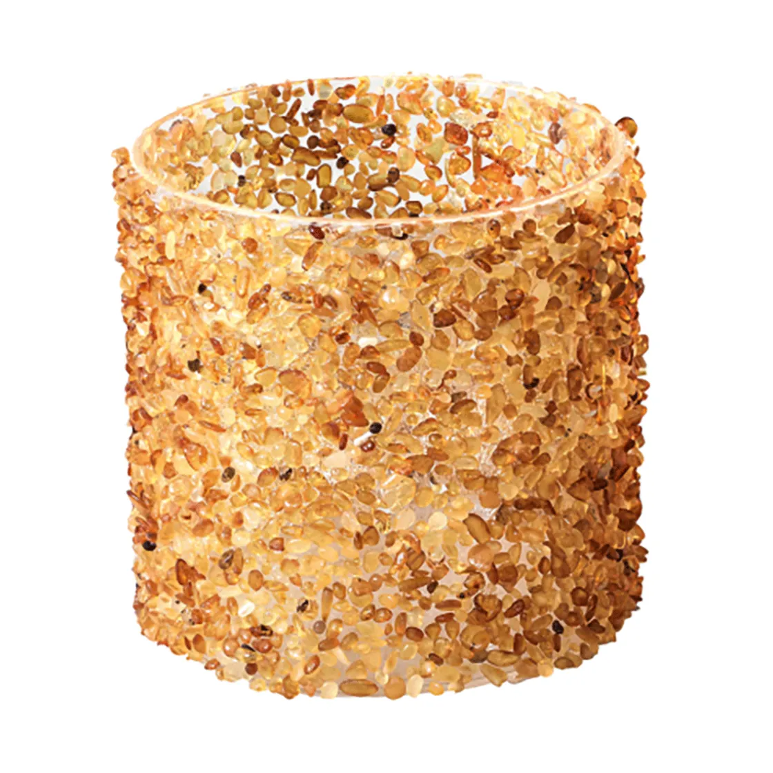 Wahrhaft golden ist das Lichtspiel der Bernsteine in diesem Teelichthalter. Es weckt tiefe Erinnerungen an die Feuer uralter Zeiten, die Geborgenheit, Wärme und Vertrautheit bedeutet haben. Dabei können sich bewegende Gefühle auslösen, die nachdenklich stimmen, aber auch den Funken der Hoffnung entzünden. Nicht nur in der dunklen Jahreszeit begleitet uns dieses besondere Licht der Lebensfreude. Glas-Teelichthalter mit Bernsteinsplitt, H. 8 cm, Ø 6,8-7 cm.