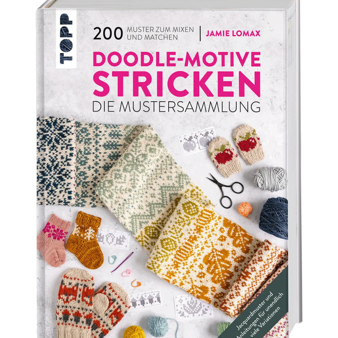 Die Muster-Innovation für Maschenkünstler Unter gestrickten Doodle-Motiven versteht man kleine Strickmuster, die nach Herzenslust miteinander kombiniert werden können und so immer wieder neue Optiken schaffen. Die Autorin Jamie Lomax hat sich dieser ganz besonderen Art von Strickmusterkombinationen angenommen und sie zur Perfektion gebracht. 200 verschiedene kleine Muster warten nur darauf, gemixt und gematcht zu werden und so für noch mehr Spaß auf den Stricknadeln zu sorgen. Ob Muster immer wieder neu kombinieren, mit Farben experimentieren, nur kleine Akzente setzen oder bereits vorhandene Projekte aufpimpen und mit einer persönlichen Note versehen: Mit diesem gestrickten Doodle-Spaß geht das alles! In vier einfachen Schritten zum Doodle-Glück: 1. Anleitung auswählen: 9 einzigartige Accessoires warten nur darauf, nachgestrickt zu werden – entweder Schritt für Schritt nach der Anleitung oder ganz individuell mit eigenen Musterzusammenstellungen. 2. Motive auswählen: 200 witzige Motive können nach eigenen Vorlieben gemixt und gematcht werden, bis die neue Lieblingskombination gefunden ist. 3. Garn und Farben auswählen: Nach persönlichem Geschmack können alle Motive mit den eigenen Material- und Wunschfarben gestrickt werden. So passen sie sich ganz automatisch jedem Stil an. 4. Einfach stricken: Anleitung + Motive + Garn in Lieblingsfarben und schon kann es losgehen mit dem ersten eigenen Doodle-Projekt. Werden Sie kreativ und gestalten Sie Ihr ganz eigenes Projekt mit ihrer individuellen Musterkombination. Keine Angst vor dem großen Fadensalat: Jedes Motiv arbeitet mit nur zwei Farben pro Reihe bzw. Runde – so ist es auch für Jacquard-Neulinge gar kein Problem, die Projekte nachzuarbeiten. Die Autorin gibt wichtige Tipps und Tricks von der Materialauswahl und Farbkombination bis hin zur Erstellung eigener Kreationen, sodass Sie Schritt für Schritt durch Ihr Projekt geführt werden. Ergibt sich doch einmal eine Technik-Frage, findet sich im abschließenden Grundlagenteil die richtige Antwort. Das erwartet Sie: 200 einzigartige Doodle-MotiveBasis-Muster, Frühlings-, Sommer-, Herbst- und Winter-Muster9 einfache Anleitungen zum Ausprobierenmit kreativen Variations-IdeenTipps und Tricks zum Jacquardstrickenhilfreiche Techniken zum Arbeiten und Anpassen der Strickmuster sowie für knifflige Stellen