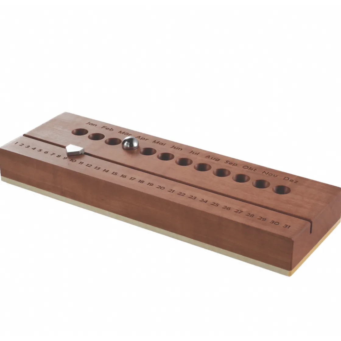 Dieser formschöne und absolut dekorative Kalender ist ein Kalender für die Ewigkeit. Jeden Morgen können Sie das neue Datum mit einem Handgriff aktualisieren: Die Tage zeigen Sie mittels des kleinen Pfeils aus Stahl an, die Monate werden von einer Kugel gekennzeichnet. Der ewige Kalender besteht aus haptisch und optisch besonders schönem Holz des Birnbaums und des Ahorns. Die Beschriftung wurde per Laser ausgeführt. Wir haben den ewigen Kalender aus Holz bei den Steinhöriger Werkstätten in Bayern entdeckt. Schon seit den 80er-Jahren fertigen dort Menschen mit körperlichen, geistigen und seelischen Behinderungen solch besondere Utensilien für das Büro und den heimischen Schreibtisch an. Die Accessoires sind immer von hoher Qualität und zeichnen sich durch ein ansprechendes Design und ihre gute Funktionalität aus. Zudem ist jedes Produkt ein Unikat, sodass unterschiedliche Maserungen und Farbabweichungen immer möglich, niemals aber ein Mangel sind. Vielmehr sind diese Unterschiede ein Kennzeichen dafür, dass es sich bei diesen Büro-Accessoires eben nicht um Holzimitate handelt, sondern um Echtholz-Erzeugnisse. Bei uns im Shop finden Sie viele weitere Produkte für Ihren Schreibtisch.