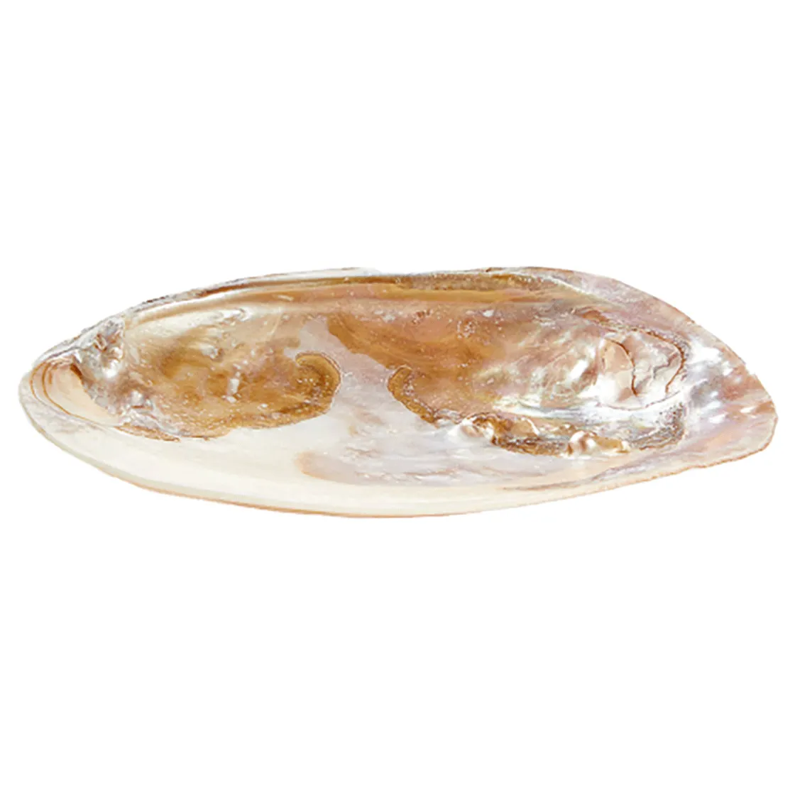 Eine Kostbarkeit ist die Perlmutt-Schale einer Süßwassermuschel – und ein Wunder der Natur ist es, wenn sich, wie hier, eine Perle darin gebildet hat. Geben Sie Schmuck in die edle Muschelschale, eine wohlriechende Seife oder heiliges Räucherwerk. Oder bestaunen Sie sie in ihrer puren Schönheit.L. ca. 16 x B. ca. 10 cm, 1 Hälfte Süßwasser Perlmuttmuschel. Jedes Stück ist ein Unikat.