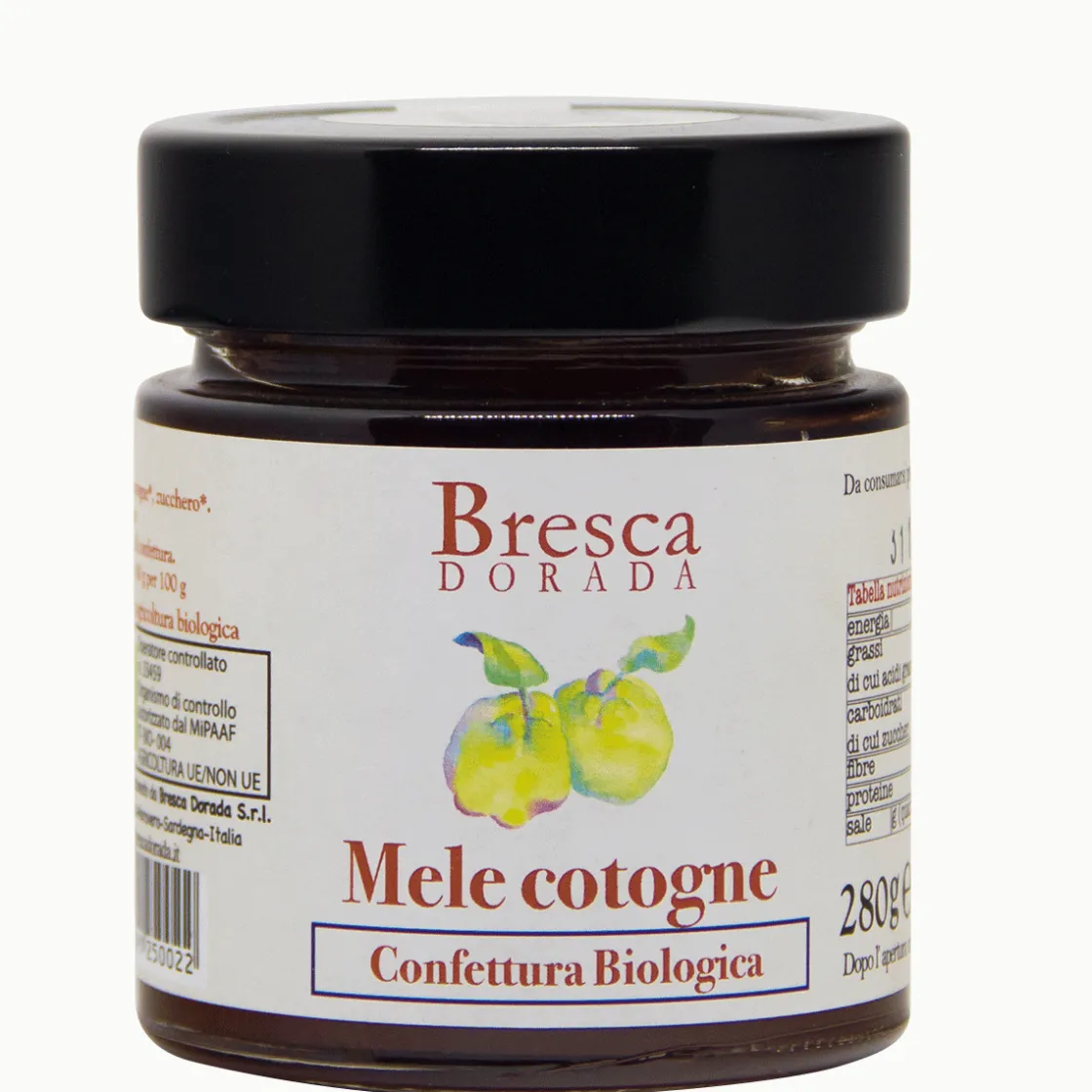Die auf Sardinien geernteten Quitten aus kontrolliert biologischem Anbau werden mit Zucker, Honig und biologischem Zitronensaft zu einer zarten geschmeidigen Konfitüre verarbeitet, die fruchtig und aromatisch ist. Sie schmeckt gut auf Brot und Brötchen, aber auch eingerührt in Joghurt oder Quark, um Gebäck zu aromatisieren oder als Verfeinerung zu Wild und anderen Fleischgerichten. Das natürlich geerntete Obst, das Bresca Dorada verwendet, kommt von lokalen Bauernhöfen aus der sonnigen Region Sarrabus, zwischen dem Meer und den Bergen. Die Konfitüren und Marmeladen mit hohem Fruchtanteil werden bei niedrigen Temperaturen zubereitet. Auf diese Weise gehen der Geschmack und das Aroma der frischen Früchte nicht verloren. Ohne Zusatzstoffe und Konservierungsstoffe. (Bio-zert. IT-BIO-004-2009626)