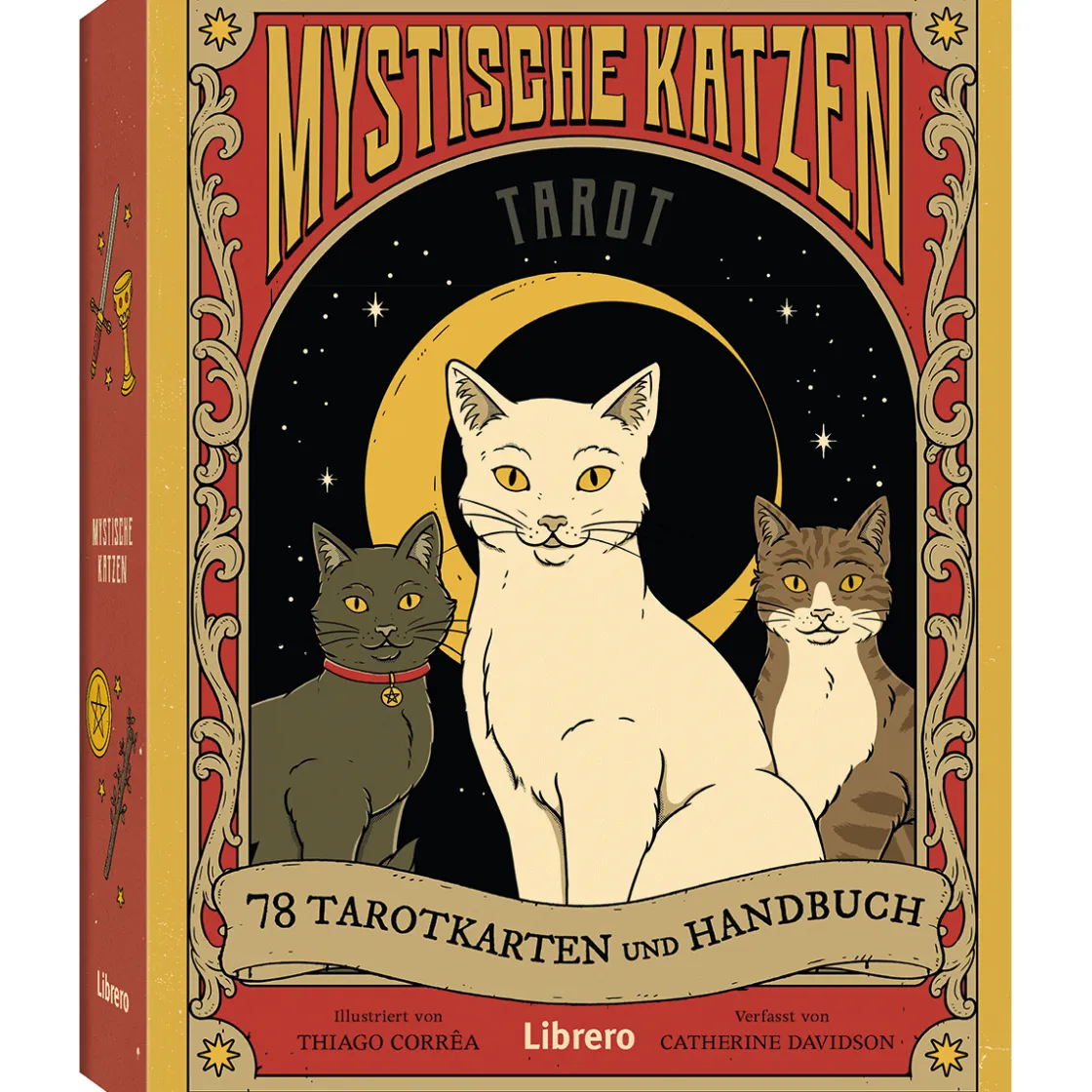 Wecken Sie mit diesen Karten mit Katzenmotiven und einem informativen Handbuch über die uralte Kunst des Tarot Ihre göttliche Katzenweisheit. Unsere Beziehung zu Katzen als Gefährten und ihre zahllosen Ausdrucksmöglichkeiten (wunderschön umgesetzt in diesem Tarot) verleihen diesen Karten eine mystische Harmonie. Die Karten werden Ihnen helfen, die Magie des Tarot zu entdecken. Zu jeder Karte gibt es ausführliche Erklärungen, Schlüsselwörter und umgekehrte Bedeutungen! Das Set enthält ein 80-seitiges, reich illustriertes Handbuch und 78 Tarotkarten, die in einer praktischen Box aufbewahrt werden.