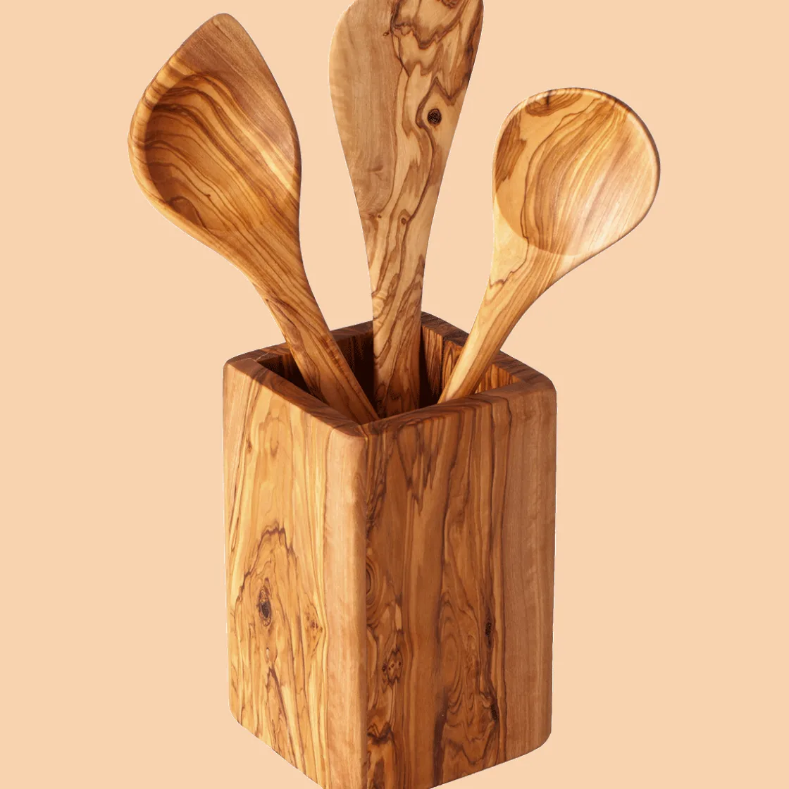 Hot Waschbär 3er-Kochset aus Olivenholz plus Köcher.