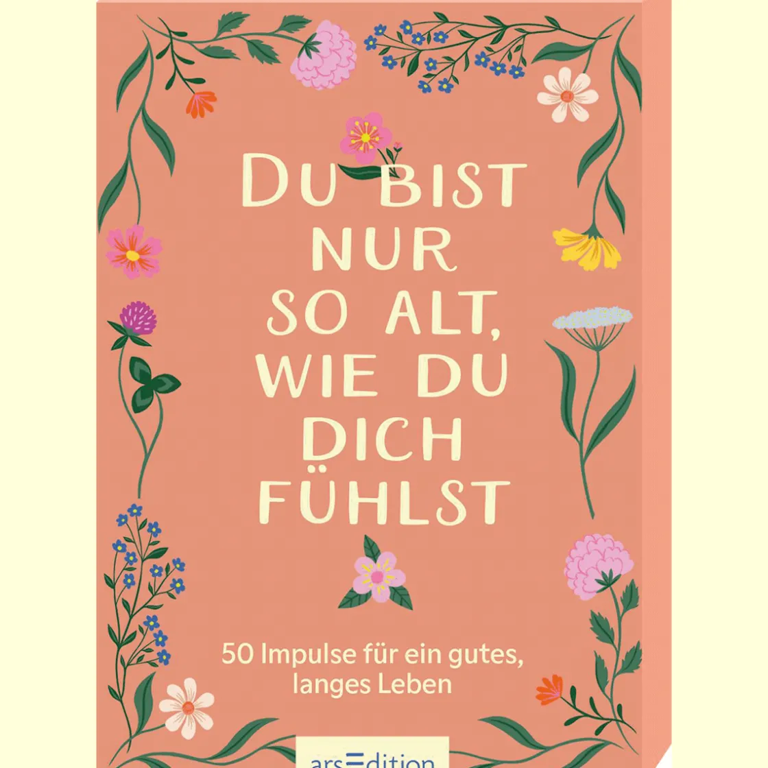 Du bist nur so alt wie du dich fühlst: 50 Longevity-Impulse für ein gutes und langes Leben Erlebe das Gefühl von Selbstliebe, Freiheit und Leichtigkeit mit dieser wundervollen Kartenbox. Es erwarten dich 50 Karten mit wertvollen Impulsen, um dein Leben in vollen Zügen zu genießen. Themen wie Achtsamkeit, Glück und das eigene Erleben stehen dabei besonders im Vordergrund. Entdecke die Weisheit der kleinen Dinge: Tauche ein in die Welt der Achtsamkeit und lerne, wie du durch einfache Veränderungen in deinem Alltag mehr Freude und Zufriedenheit erlangst. Von gesunder Ernährung über Bewegung bis hin zu Stressreduktion – jede Karte ist ein Schritt zu einem erfüllteren Leben. Gesunde Ernährung: Lass dich zu leckeren Gerichten inspirieren, die dir guttunBewegung: Verbessere deine Fitness und habe Spaß dabei, dich auszupowernStress reduzieren: Finde Entspannung und lass deinen Körper zur Ruhe kommenSoziale Kontakte: Pflege deine Freundschaften und schaffe wertvolle Erinnerungen mit deinen LiebenBesser schlafen: Beende deinen Tag mit positiven Gedanken und sorge für einen erholsamen SchlafGestalte dir deine beste Zukunft Diese tolle Kartenbox bietet inspirierende Anregungen, um jeden Tag bewusster und glücklicher zu gestalten. Mit praktischen Tipps und motivierenden Gedanken wird sie zu deinem Begleiter auf dem Weg zu einem langen und guten Leben.