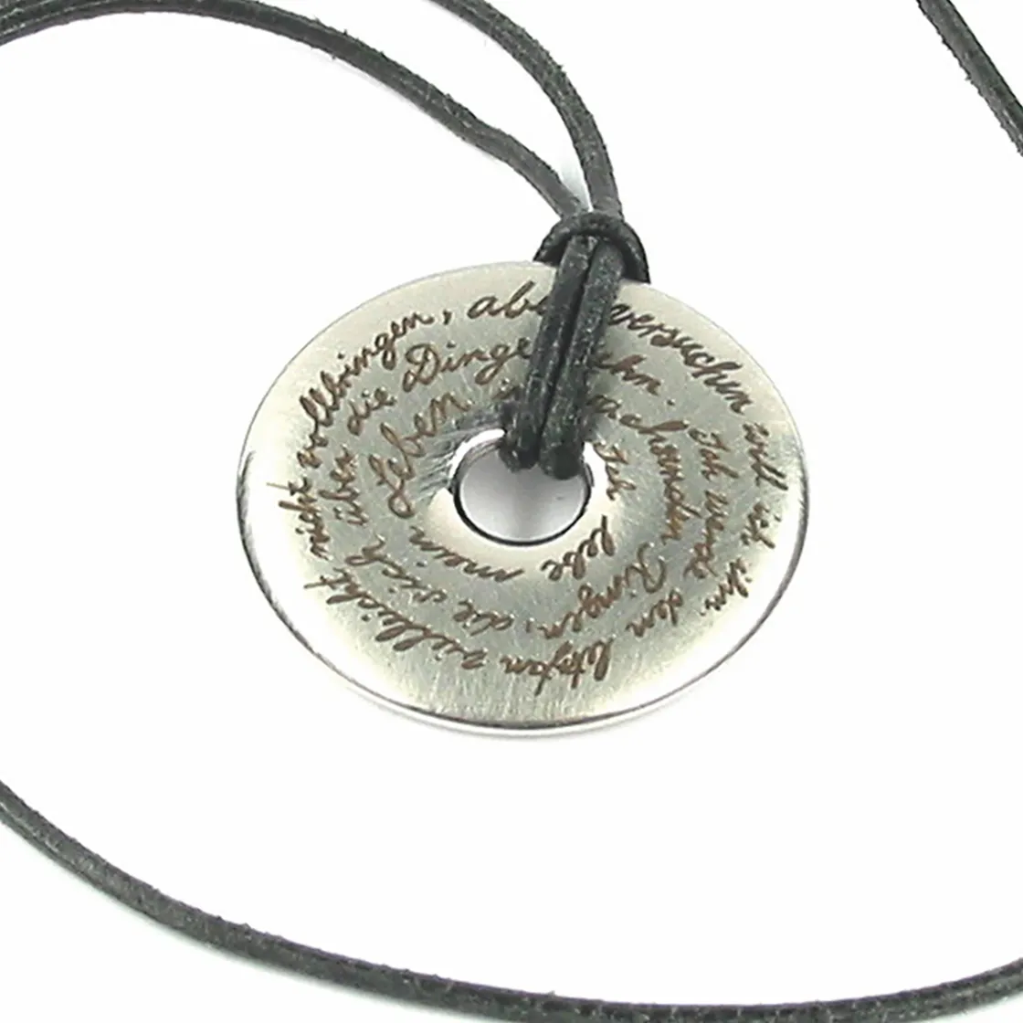 Ø 3 cm, Edelstahl, Lederband 100 cm, längenverstellbar mit Kugelzugverschluss, Handanfertigung in Pforzheim.
