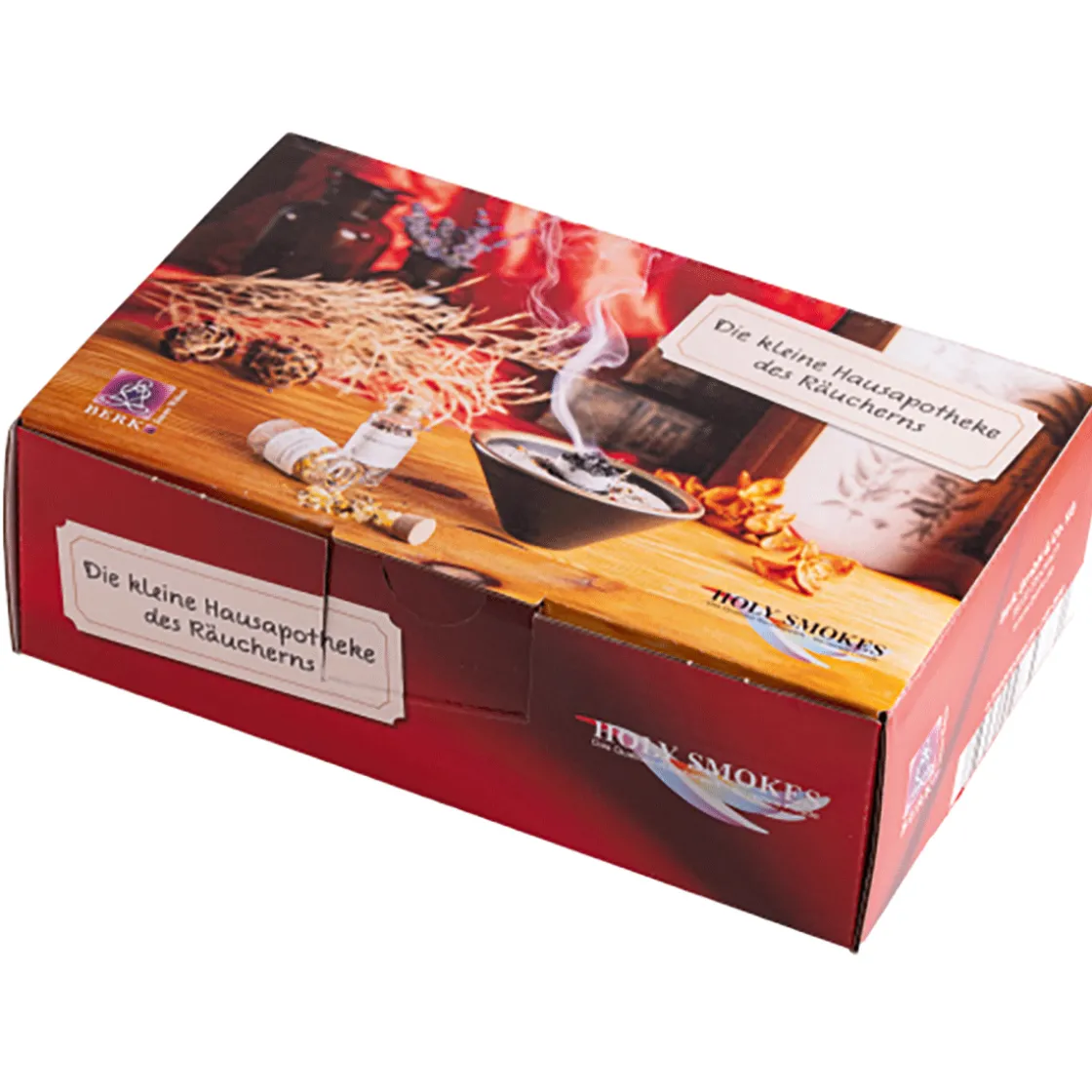Jeder Mensch kennt die Momente, in denen man ein wenig Ruhe oder Seelenbalsam benötigt. Die Zeit, in der wir leben, bringt uns immer wieder an unsere Grenzen und erfordert unsere ganze Kraft. Es gibt so viele unterschiedliche Situationen, in denen Räuchern uns von dem Ballast befreien kann und uns wieder näher zu uns führt. Ob wir nach einem langen Arbeitstag wieder Energie tanken, die Räume nach Streitigkeiten energetisch reinigen, den Schlaf fördern oder einfach mal abschalten wollen – in diesem Set findest du so einige, unterschiedliche Räucherstoffe und Räuchermischungen, um für so Allerlei gewappnet zu sein. Wie gut es ist, eine kleine Räucherapotheke zu Hause zu haben!In diesem Set findest du 12 Gläschen mit kraftvollen Räucherstoffen eingeteilt auf 4 große Themenbereiche. Ein Booklet führt durch die verschiedenen Anwendungsgebiete und erklärt ausführlich die Räucherstoffe und ihre Wirkung.Inhalt: Eine Räucherschale mit Sand, 12 Stk. Kohle ø 27 mm, Eine ausführliche Anleitung, 12 Räucherungen in 10 ml Gläschen zu den Themen:Gesundheit: Olibanum Harz, Kampfer, Krankheitsgeister vertreibenReinigung: Weißer Salbei, AurareinigungKraft tanken: Dammar, DurchschlafenSeelenbalsam: Palo Santo, Seelentrost, Myrrhe