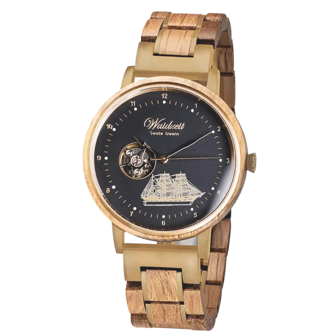 Diese außergewöhnliche Automatikuhr »Dreimaster« überzeugt vor allem durch ihr Design und das Material: Das Armband nämlich besteht aus einer Kombination von Edelstahl und echtem, antikem Schiffsholz, das von dem Großsegler »Seute Deern« (plattdeutsch für: süßes Mädchen) stammt. Der Zeitanzeiger für Herren wird in einer limitierten Auflage von Hand gefertigt, aber nicht, wie man vermuten könnte, an der Nordseeküste, sondern in Österreich. Auf dem Zifferblatt sehen Sie denn auch eine Illustration des legendären Trauungs- und Restaurantschiffs »Seute Deern«. Dies war ein ganz besonderes Schiff, das eine 100-jährige Geschichte vorweisen konnte. Leider havarierte der einzigartige Dreimaster 2019. In der Einfassung des Zifferblattes und im Armband wurden verbliebene Hölzer eingearbeitet. Ein hochwertiges japanisches Automatikuhrwerk zeigt Ihnen präzise die Zeit an. Im Lieferumfang enthalten ist ein Wechselarmband aus Segeltuch. Ein Echtheitszertifikat aus Kupferblech stellt die Herkunft dieses einzigartigen Zeitmessers sicher und die Seriennummer der limitierten Auflage wird an jeder Uhr eingraviert. Übrigens spendet die Uhrenmanufaktur aufgrund ihrer Leidenschaft fürs Segeln und die Seefahrt 10 Prozent des Verkaufspreises für die Renovierung der »Grönland«, einem der ältesten Polarschiffe Deutschlands!