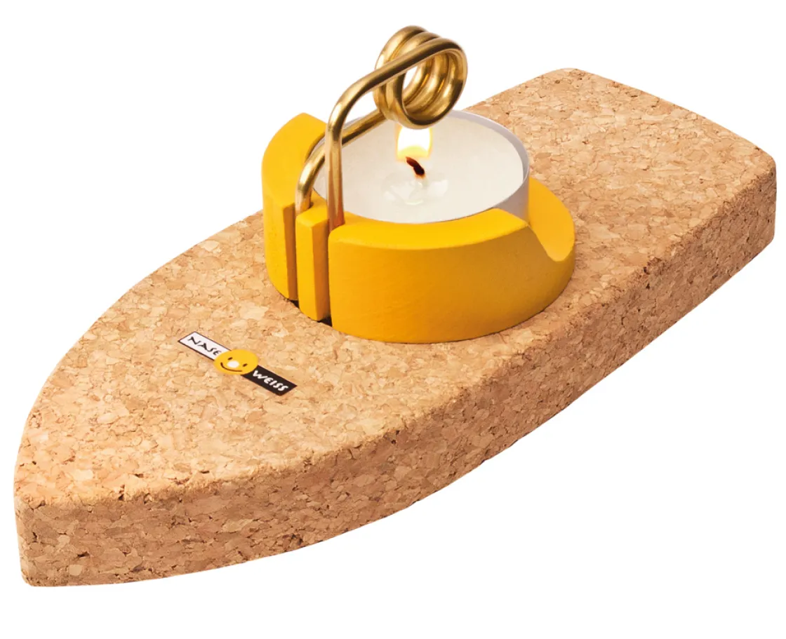 Hier können experimentierfreudige und neugierige Kinder einem kleinen Korkschiff mal richtig »Dampf« machen. Und dann fährt das 17,5 cm lange Boot nämlich auch richtig zügig durchs Planschbecken, einen Pool, die Badewanne oder einen kleinen Bach entlang. Das Korkschiff mit Teelicht ist ein tolles Spielzeug für Kinder ab ca. 6 Jahren, die auf diese Weise auch spielerisch schon Grundlagen der Physik verstehen werden. Und das mit dem Schiffchen geht so (eine ausführliche Anleitung liegt der Lieferung natürlich bei): Zuerst wird der Motor mit Wasser gefüllt, dann wird das Teelicht angezündet, das kleine Heizrohr erhitzt sich natürlich und nun dauert es gar nicht lange und das Schiff nimmt Fahrt auf. Das Bötchen fährt, solange die Kerze brennt … oder jemand das Boot zum Kentern bringt. Diese Technik ist übrigens schon über hundert Jahre bekannt und wird auch Pulsarmotor genannt. Wir haben dieses tolle, spannende und hochwertige Forscher-Spielzeug von den Ostalb-Werkstätten des Samariterstifts in Neresheim. Das Projekt «Naseweiss« beschäftigt rund 400 Menschen mit physischen Erkrankungen. Die Produktion der häufig preisgekrönten und mit dem Gütesiegel «spiel gut« ausgezeichneten Kinderspielzeuge ist durch die Art der Produktgestaltung für die Beschäftigten besonders gut geeignet. Sämtliche Produkte sind sehr individuell und funktionell gestaltet. Das »Dampfschiff« gehört übrigens auch zu den Preisträgern im Sortiment: Das Schiff hat den Designpreis »FORM # 2014« gewonnen, den der Bundesverband Kunsthandwerk zusammen mit der Messe Frankfurt Exhibition GmbH vergibt.
