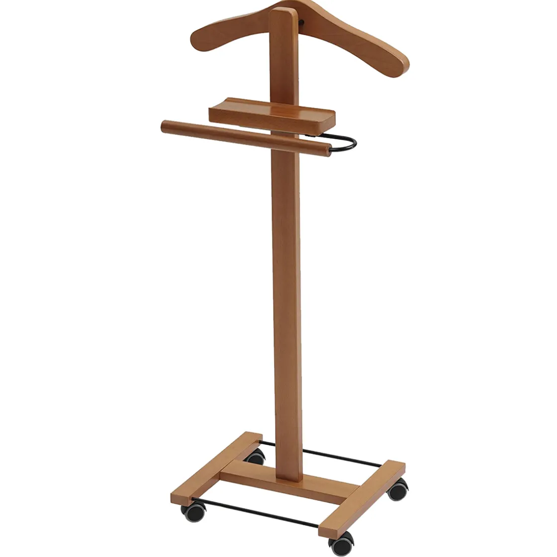 37 x 32 x 101 cm, Buchenholz, Schulterbügel, Hosenstange, Ablage, schwenkbare Räder, kratzfester Gummi, fertig montiert (bis auf Rollen), hergestellt in Italien.