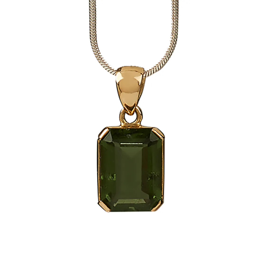 Dank seiner aufwändigen Facettierung, erstrahlt dieser einzigartige Moldavit-Anhänger im prachtvollen Glanz. Die großen Moldavite sind bereits eine absolute Rarität, doch große facettierte Moldavite sind noch seltener, und schwer zu finden. Mit diesem Anhänger kannst du dein Herz-Chakra erreichen und deine Seele wird vor Glück strahlen. Dieser Stein wird geboren – er bildet sich nicht einfach so in der Erde. Es braucht zwei außerordentliche Energiefelder, um die Tektite, zu denen die Moldavite zählen, entstehen zu lassen. Beim Einschlag des Meteoriten im Nördlinger Ries vor 14,5 Mio. Jahren schmolz Gestein und wurde weit nach Osten geschleudert. Während des Flugs kühlte es ab und regnete in der Moldauregion nieder. Der Meteorit, erfüllt von seiner Reise durch das All, wirkte hierbei wie die männliche, gebende Kraft. Die Erde, die trägt und gestaltet, übernahm den empfangenden, weiblichen Part. Wie in einem kosmischen Zeugungsakt wurde so ein neuer Stein erschaffen, ein Tektit, nach seinem Fundort Moldavit genannt.Dieser Stein trägt somit die Weisheit des Kosmos und die schöpferische Kraft der Erde in sich. Mit beidem bringt er uns in Berührung und weckt so die in uns schlummernden Gaben. Seine transformatorische Kraft zeigt sich erst im Zusammenwirken mit dem Menschen, der ihn trägt. Das macht den Moldavit so einzigartig.
