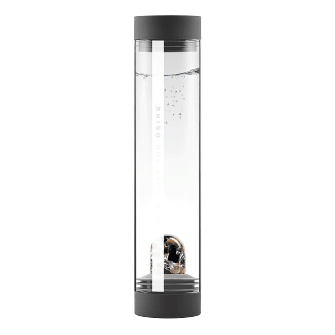 33 cm, Ø 7,5 cm, Volumen ca. 750 ml, Edelsteine: Turmalin, versteinertes Holz, Rauchquarz.
