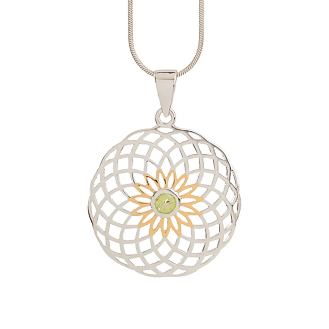 Lebensfreude entsteht, wenn alles im Gleichgewicht schwingt – wie in diesem Anhänger, der als Lotus des Lebens reich an kraftvollen Energien ist. Ein schön facettierter Peridot schmückt das Zentrum und ist umgeben von vergoldeten Blütenblättern. So wird es leicht, die Balance herzustellen und zu halten. Limitierte Auflage von 111 Stück, mit Zertifikat. 925 Silber, teilvergoldet, Peridot facettiert, Ø ca. 2,5 cm, L. mit Öse ca. 3,5 cm. Lieferung nur solange Vorrat reicht.