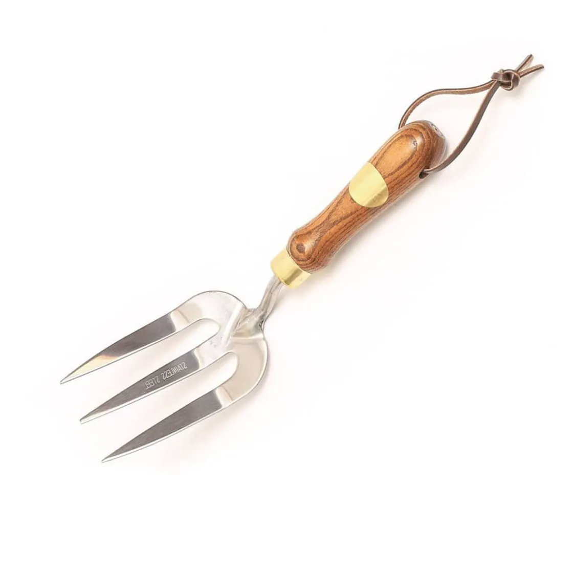 Mit den drei breiten Zinken aus Edelstahl lockern Sie im Nu den Boden Ihrer Beete auf oder befreien Sie zügig von Unkraut. Die kompakte Handgabel liegt dank der ergonomischen Form des Griffs aus Eschenholz sicher in der Hand. Ideal, um eine Überlastung des Handgelenks zu vermeiden.