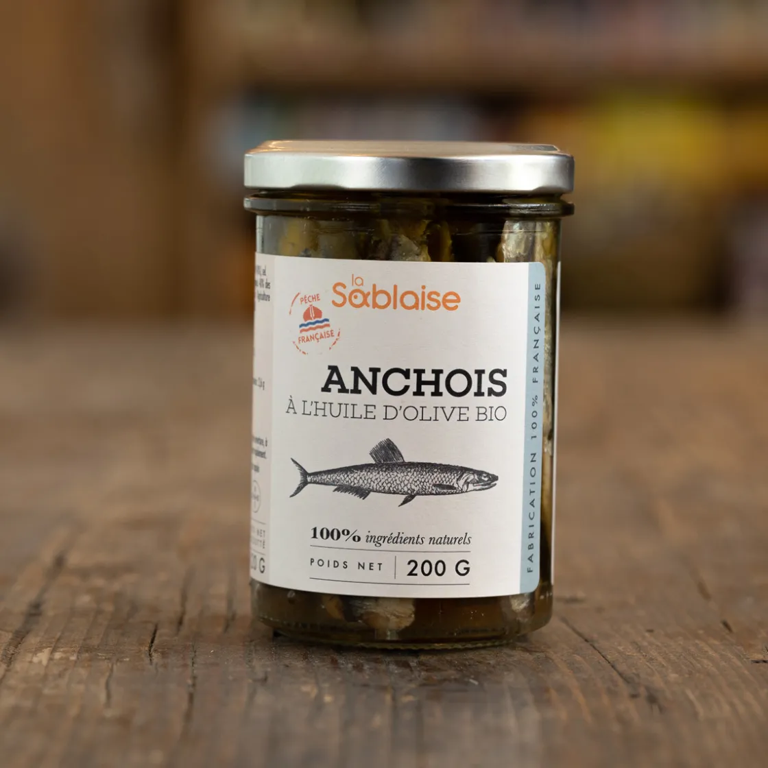 Hochwertige Anchovis, eingelegt in Bio-Olivenöl. Die Sardellenfilets sind besonders salzig und aromatisch und dienen als Würzmittel für Gerichte. Ihre Konsistenz ist mürbe. Beliebt sind sie auf Pizza, zu Pasta, wie beim Klassiker »Pasta alla puttanesca«, in Antipasti und Tapas. Aus Sardellen und Butter lässt sich eine aromatische Sardellenbutter herstellen, die sich zum Würzen von Fisch, Fleisch und Gemüse eignet. Auch frische Pasten aus Sardellen sind köstlich zu Baguette und Salat. Der Familienbetrieb Sablaise, vor 25 Jahren in Olonne-sur-mer an der Atlantikküste gegründet, steht für erlesene Konserven-Spezialitäten aus dem Meer. (bio-zert. DE-ÖKO-006)