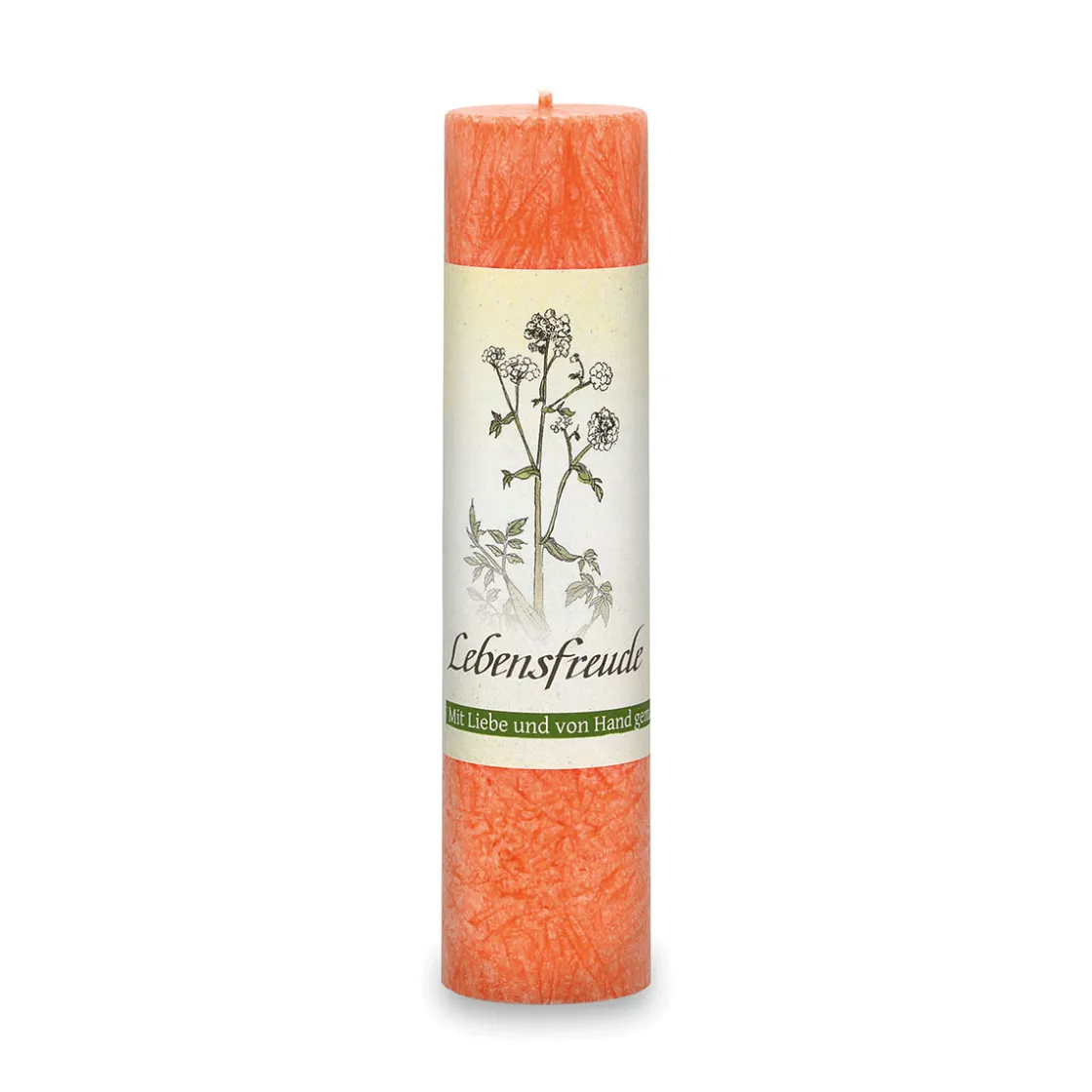 Genießen Sie die gemütliche Atmosphäre, das sanfte Licht und die zarten Düfte. Der Anblick von Sonnenblume, Gänseblümchen, Ringelblume und Johanniskraut zaubert ein Lächeln auf unser Gesicht. Diese Heilpflanzen sind Sonnenbräute und tragen die sonnige Botschaft in sich – sie vertreiben Melancholie und schenken uns Freude und Heiterkeit. Abgestimmte natürliche Öle, unter anderem mit Grapefruit, schenken uns Lebendigkeit und Frische. Die Kräuterkerze Lebensfreude wird ganz traditionell in einer kleinen Manufaktur in den Allgäuer Alpen hergestellt. Alle Kerzen werden noch von Hand gegossen und mit Farben, Düften und Essenzen ausgewählter Pflanzen angereichert, die perfekt miteinander harmonieren. Verwendet werden nur hochwertige 100% pflanzliche Stearine aus Resten der Olivenölproduktion, reine natürliche Öle, sowie Heilkräuter aus biologischem Anbau oder aus Wildsammlung. Die Kerzen werden aus Resten der Olivenölproduktion hergestellt, einer Art Trester. Das rein pflanzliche Stearin stammt zu 100 Prozent aus einer Restverwendung des europäischen Olivenanbaus und wird in Italien produziert. Die Allgäuer Heilkräuterkerze bietet eine schöne Alternative zum Räuchern. Sie verströmt einen sanften Duft und brennt bis zu 35 Stunden. Ein passendes Booklet wird mitgeliefert.